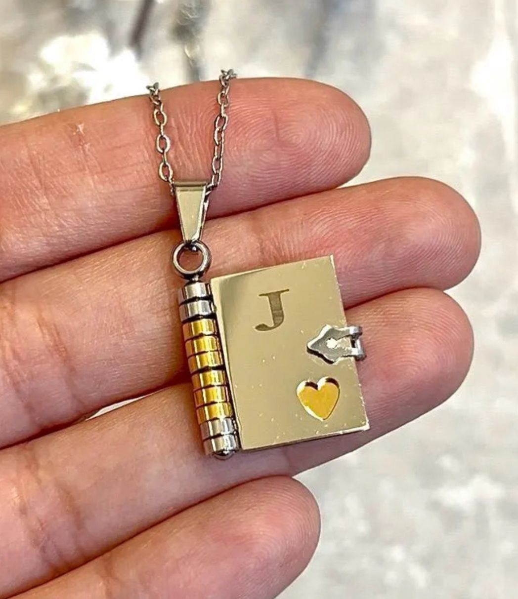3. Diseño innovador: Un dije en forma de libro con páginas grabadas que simbolizan historias, emociones y recuerdos.